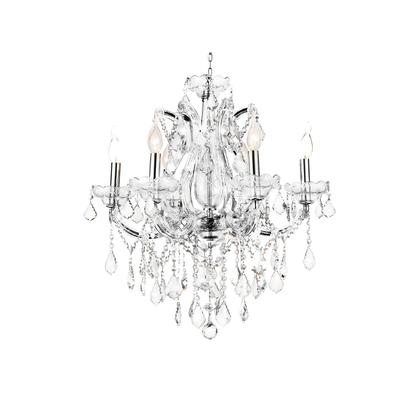 Dimensions: H 26 inches x W 24 inches x D 24 inches – Chrome Finish – Requires 6 E12 Bulbs Max 60 W (sold separately) – Includes 6 inches of wire