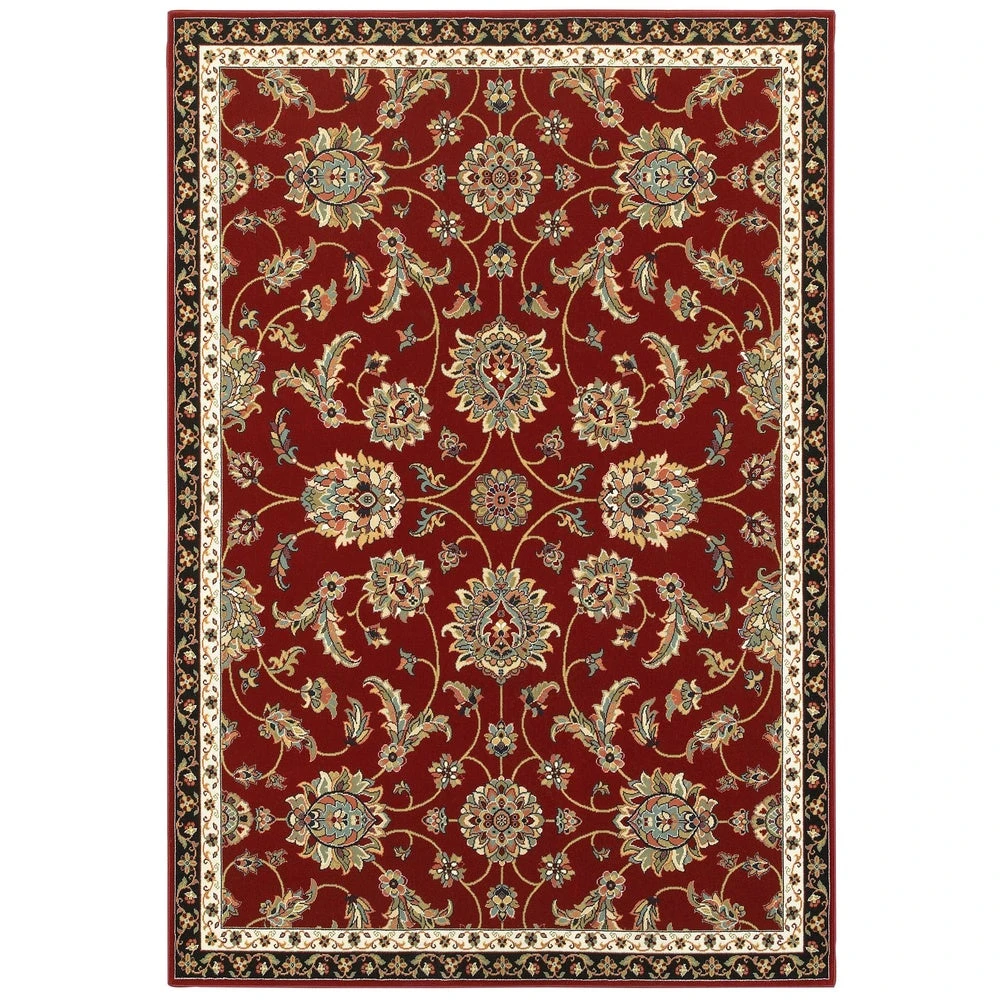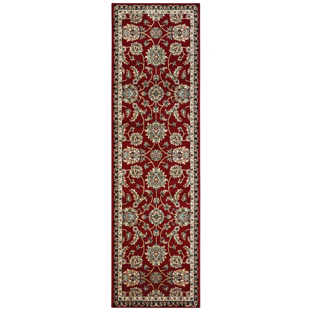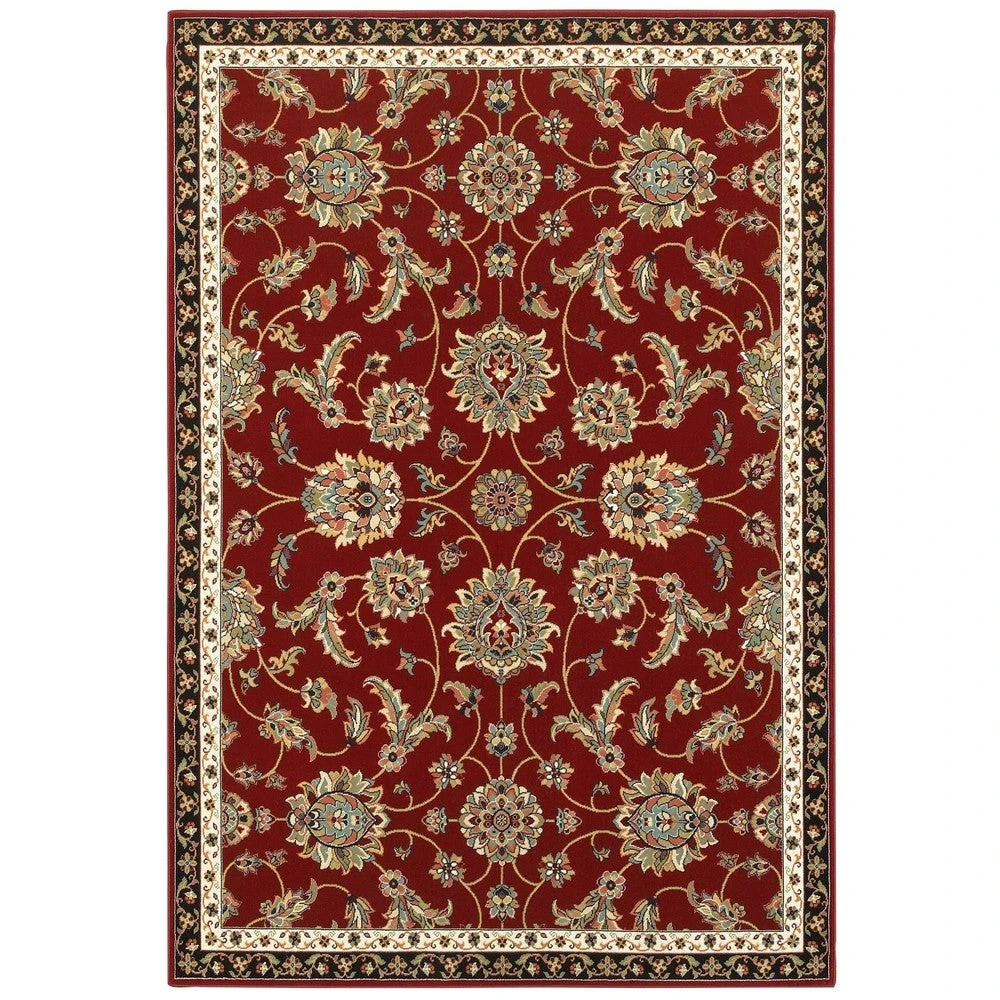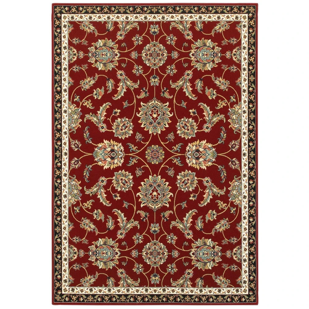 Featuring a scrollwork pomegranate blossom pattern with a double floral border, this Claude area rug from Gracewood Hollow will bring vintage style to your home. This rug is machine-woven from polypropylene for a design that is stain resistant and elegant. The attractive rug is rendered in red, black, green, red, and off-white colors, allowing it to coordinate with your living space. To maintain the look and feel of your rug, blot spills immediately with a clean white cloth, vacuum regularly and spot clean using a mild soap made for the specific rug fiber. Professionally clean occasionally or when heavily soiled.