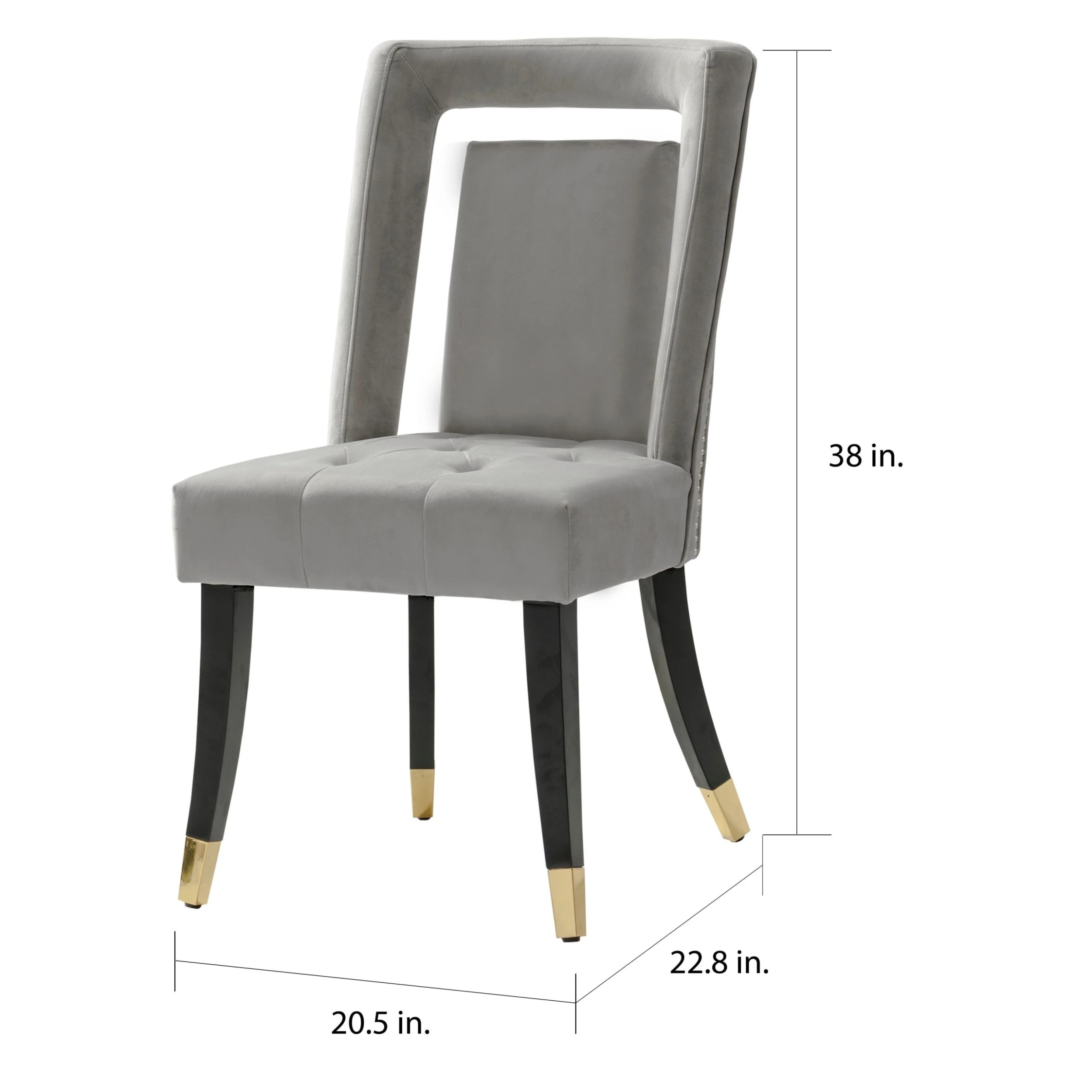 Utterly glamorous and wonderfully regal, these dining chairs are waiting to make your space a thing of beauty. The espresso-finished wood frames feature foam-filled seats, detailed with cut-out backs and nailhead trim. Choose from four velvet upholstery options to match your unique aesthetic.