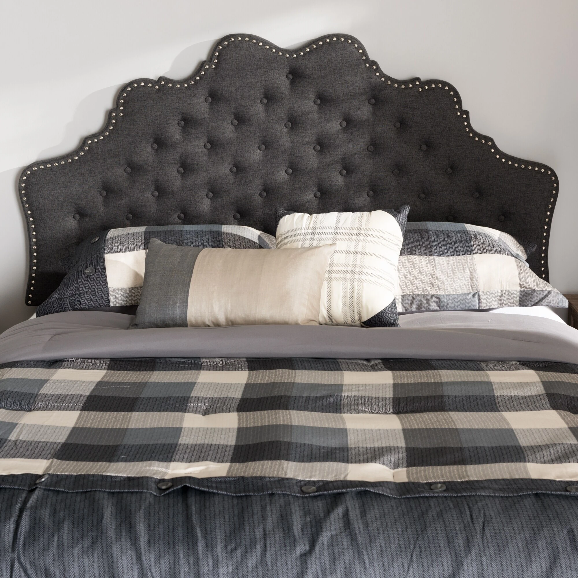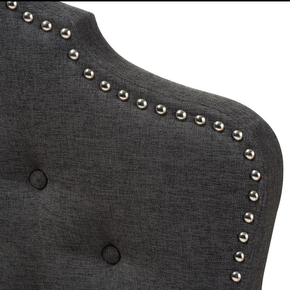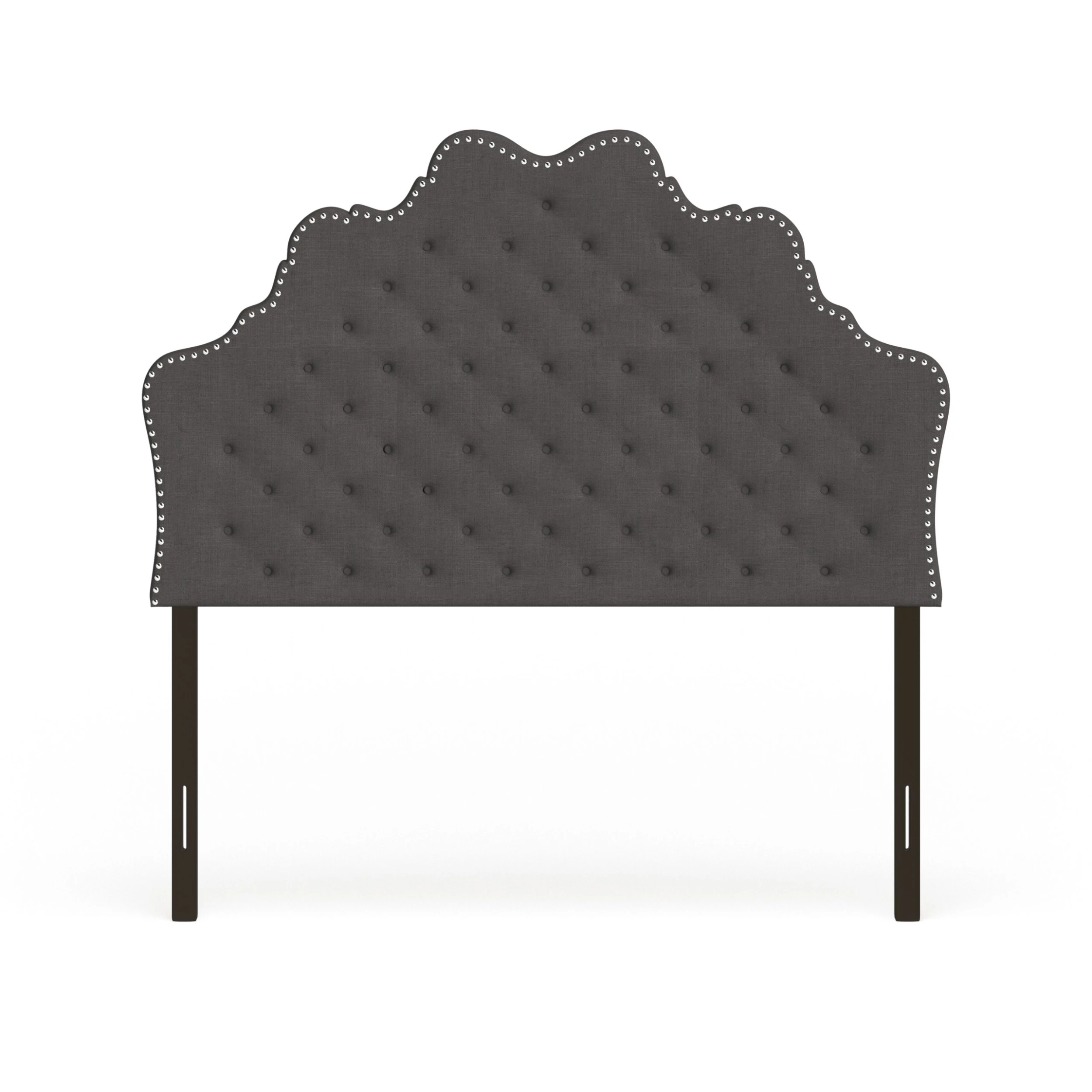 Elevate your bedroom with the luxurious elegance of this upholstered headboard. Available in a dark or light grey to match your decor, the headboard boasts button tufting and nailhead trim for a vintage, glamorous flair. Foam padding and sturdy construction ensures lasting comfort.