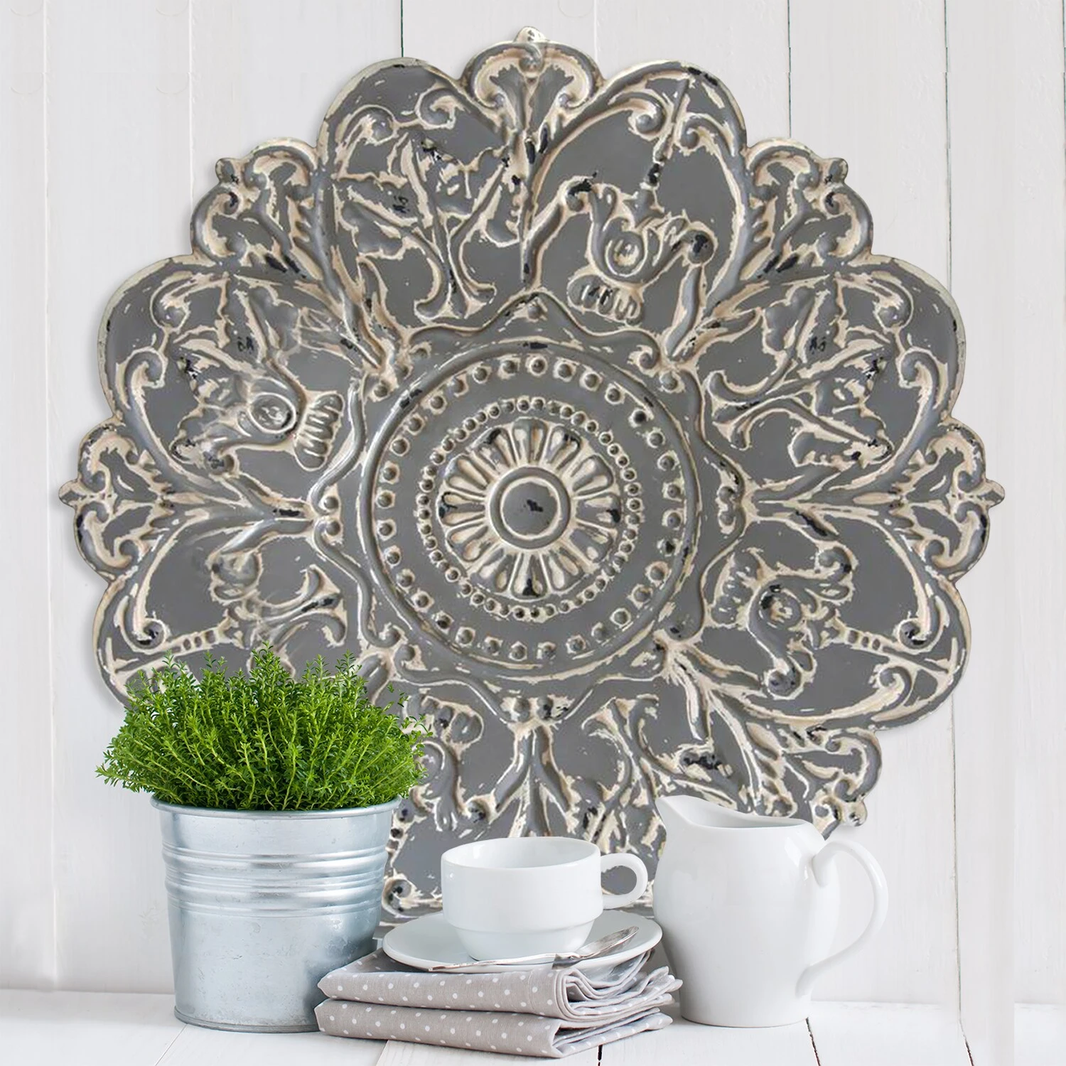 Infuse instant personality and charm into any space with this alluring decor piece. The metal base is finished with distressed grey for antique appeal, and the traditional scroll and floral details provide and elegant look.