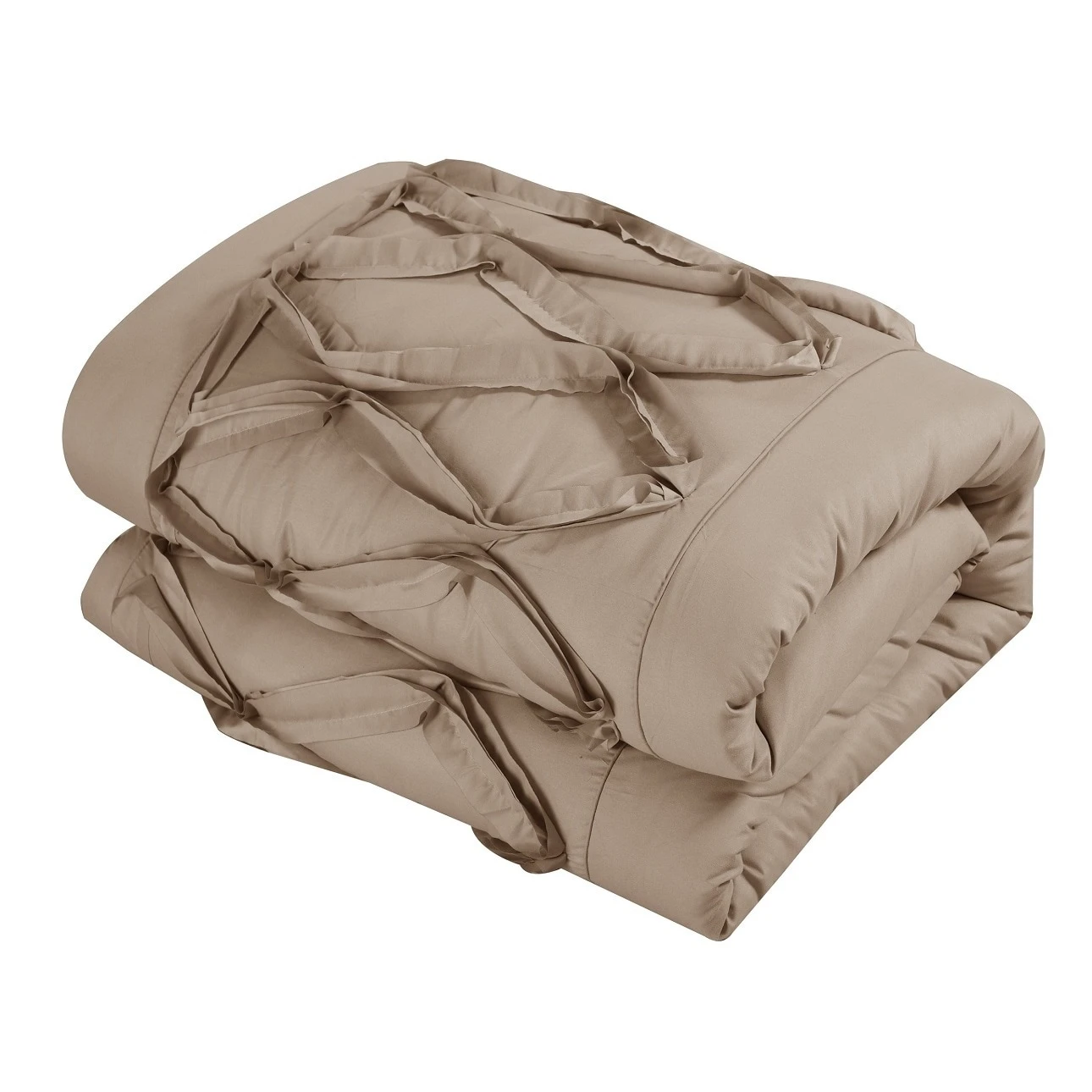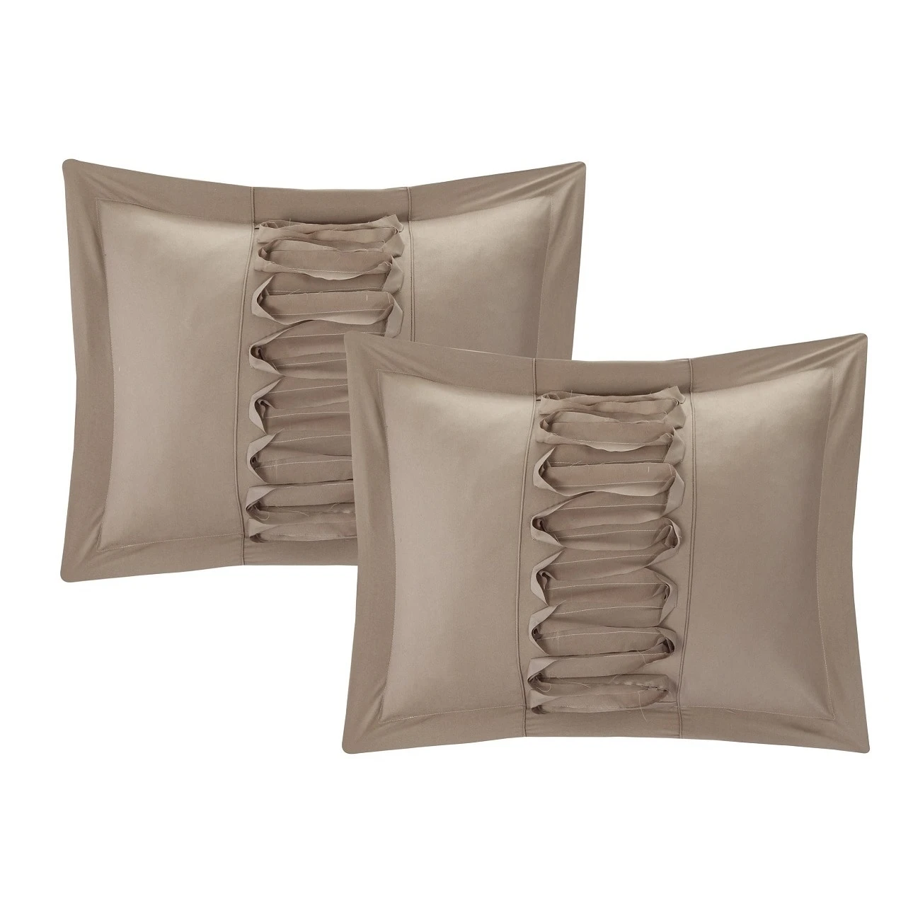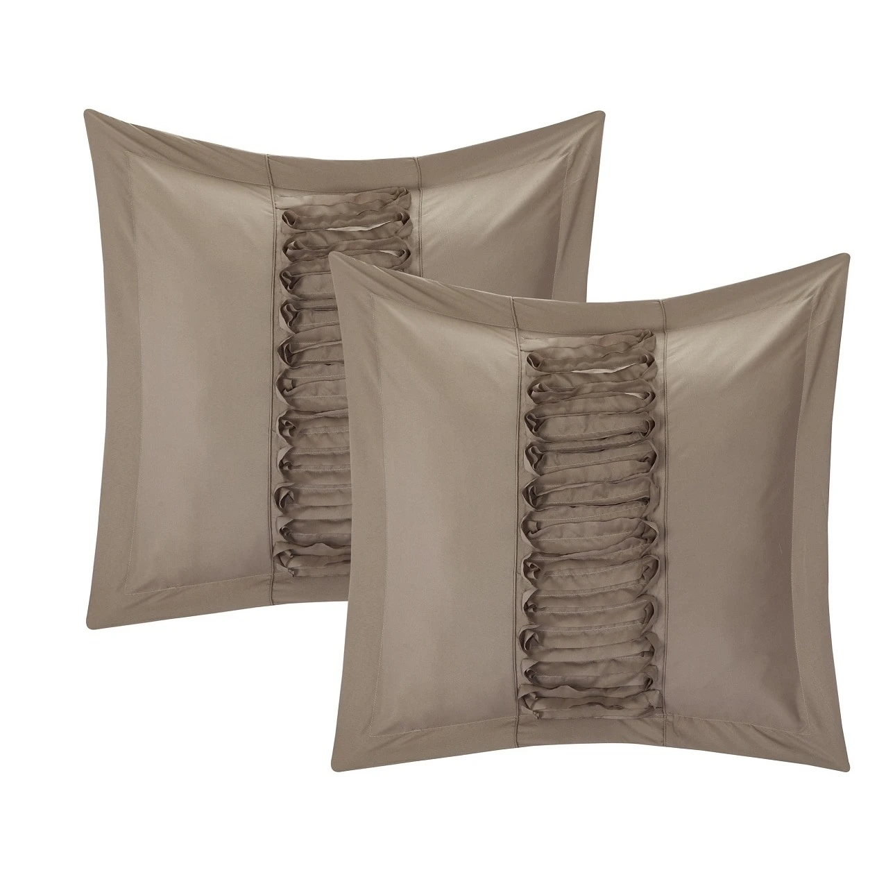- Includes 1 comforter, 1 bed skirt, 2 pillow shams, 2 euro shams, 2 decorative pillows, 1 flat sheet, 1 fitted sheet, and 2 pillowcases