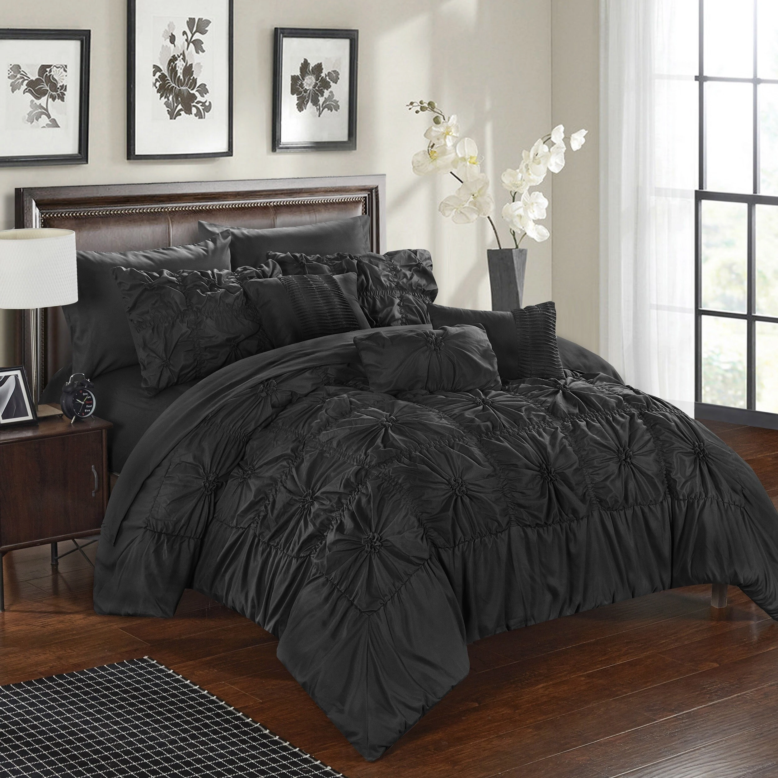- Includes: 1 Comforter, 2 Shams, 3 Decorative Pillows, 1 Flat Sheets, 1 Fitted Sheet, 2 Pillow Cases