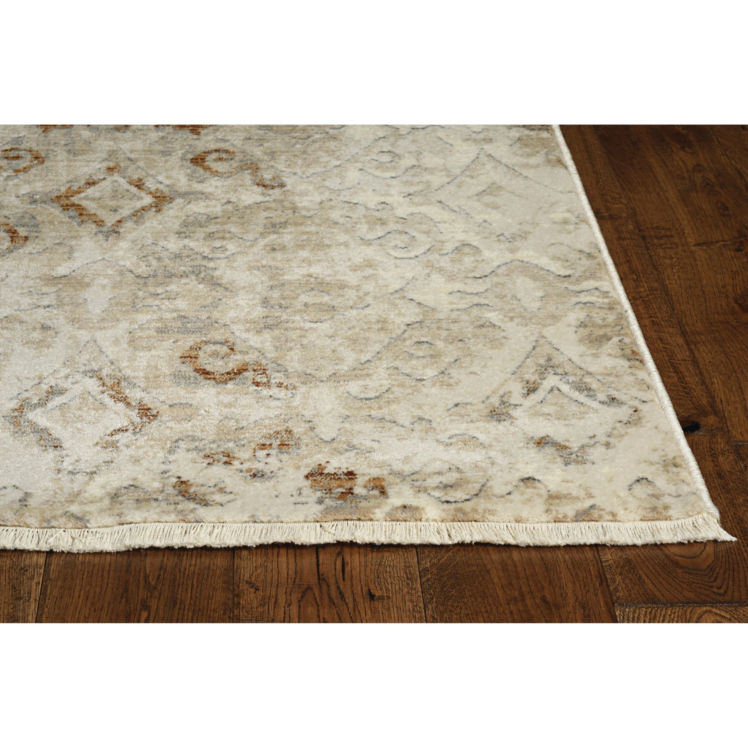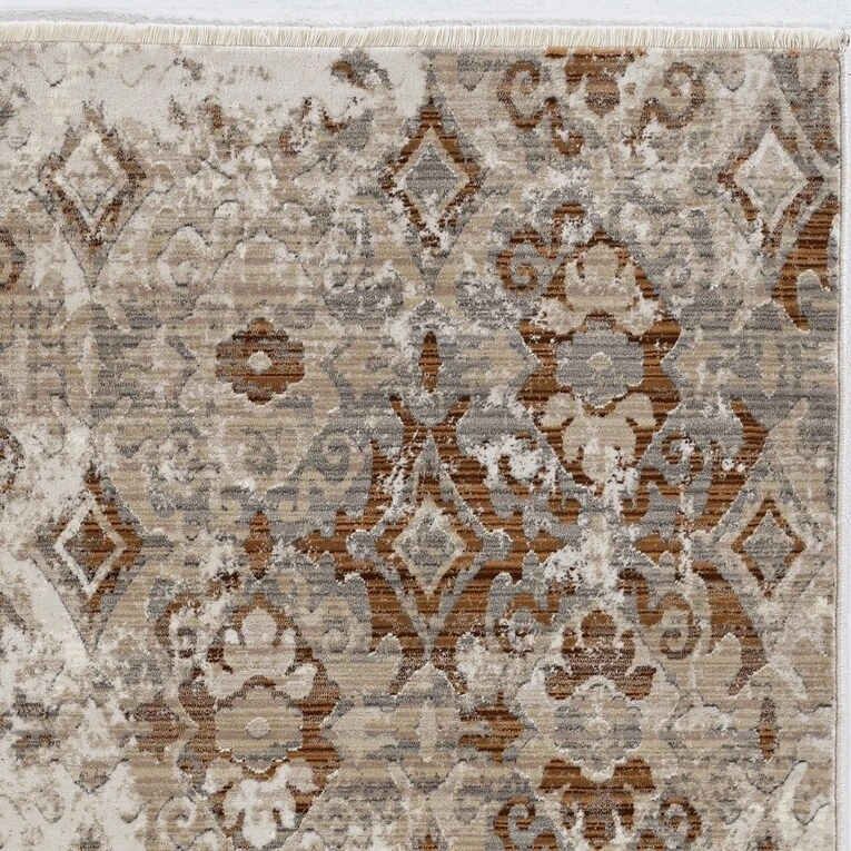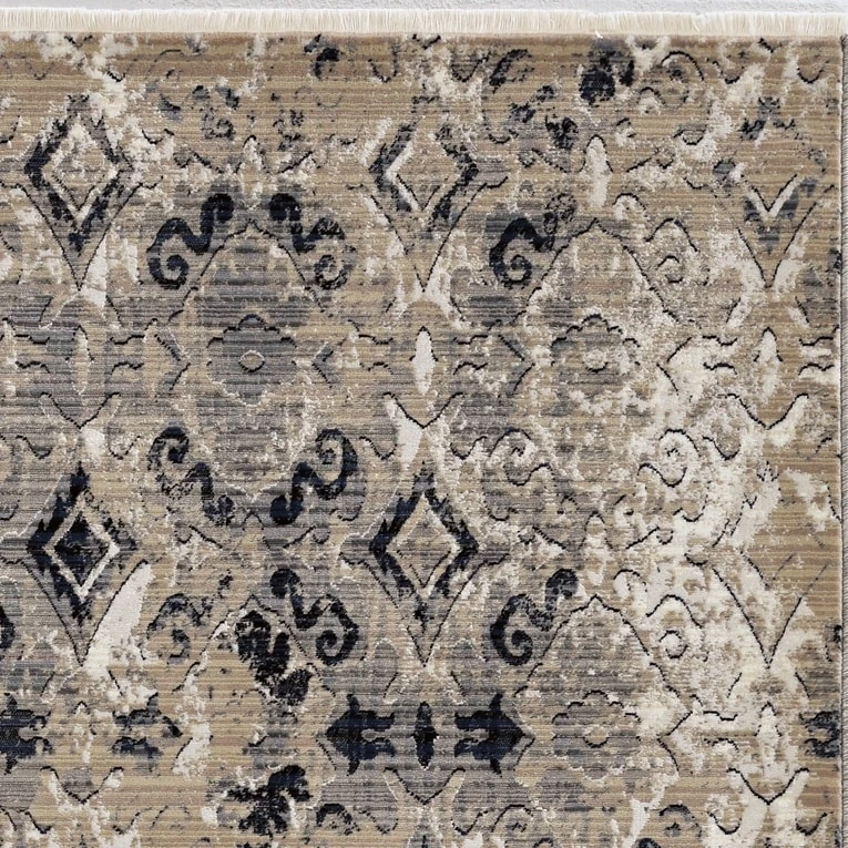 This vintage style rug has a distressed traditional design with fringed ends that add an elegant touch to any room. The Renza collection is crosswoven with polypropelene making it stain resistant and pet friendly while maintaining a high sheen pile with a hi-low texture. The use of a rug pad is recommended as there is no backing. Vacuum regularly & spot clean stains as needed.