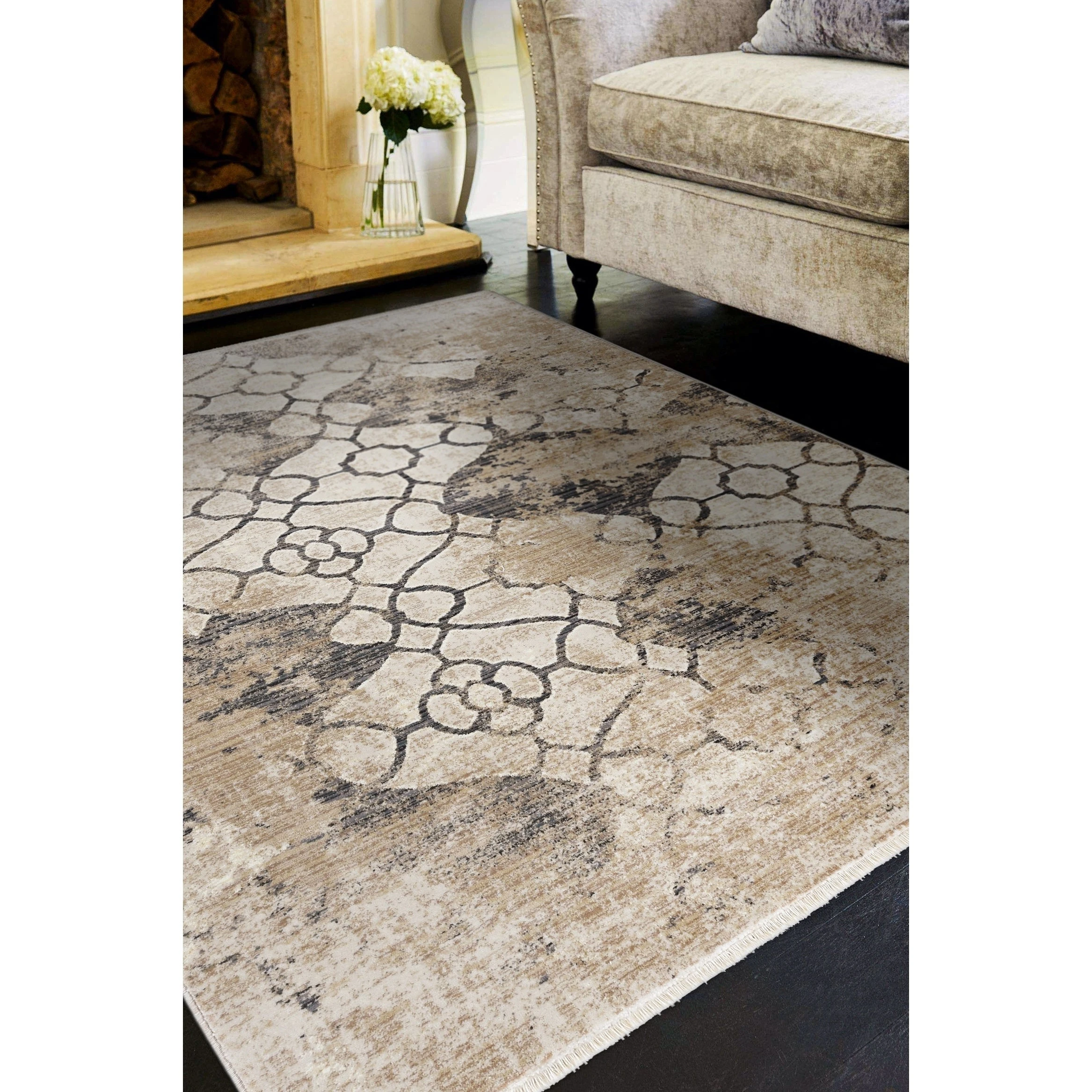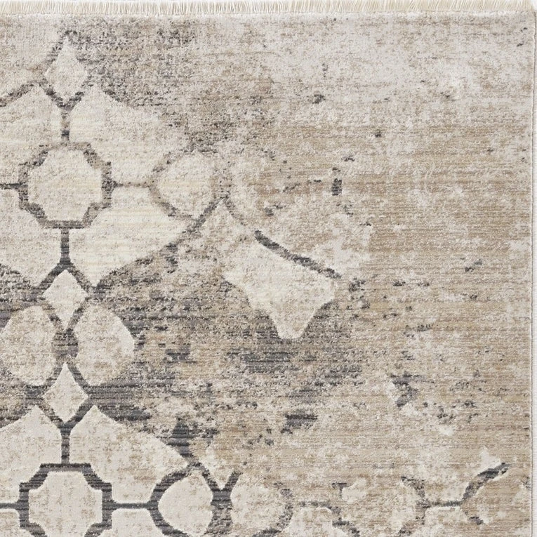 This vintage style rug has a distressed traditional design with fringed ends that add an elegant touch to any room. The Renza collection is crosswoven with polypropelene making it stain resistant and pet friendly while maintaining a high sheen pile with a hi-low texture. The use of a rug pad is recommended as there is no backing. Vacuum regularly & spot clean stains as needed.