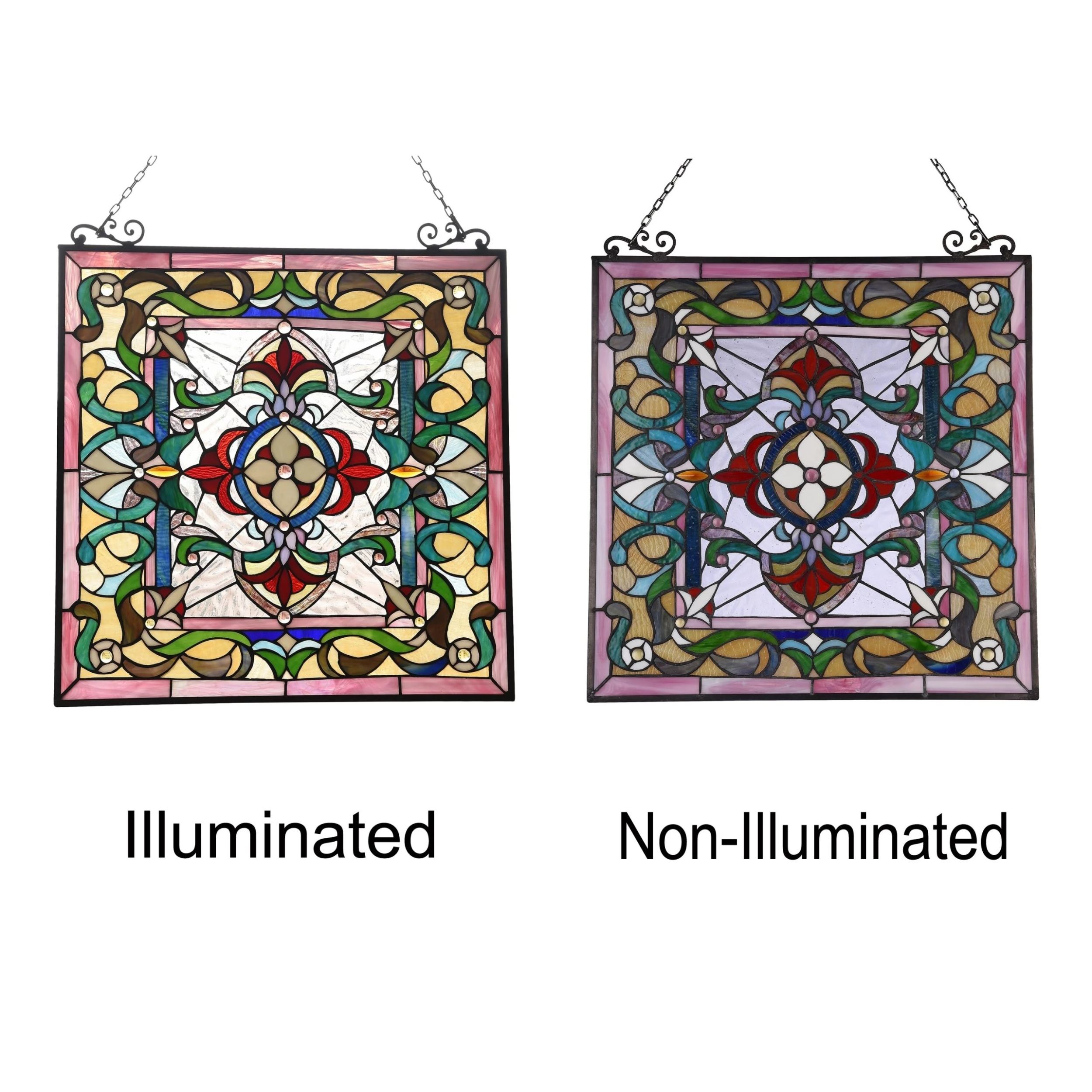 Taking a cue from the most gorgeous stained glass church windows worldwide, this Victorian window panel will add color and style to your space. Crafted from 365 hand-cut pieces of art glass, 23 glass beads, and two crystals. This window panel delivers shades of yellow, red, and green which will brighten up any room.