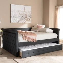 Wholesale ⌛ Gracewood Hollow Tansi Modern Upholstered Button-tufted Bed Dark Grey ????